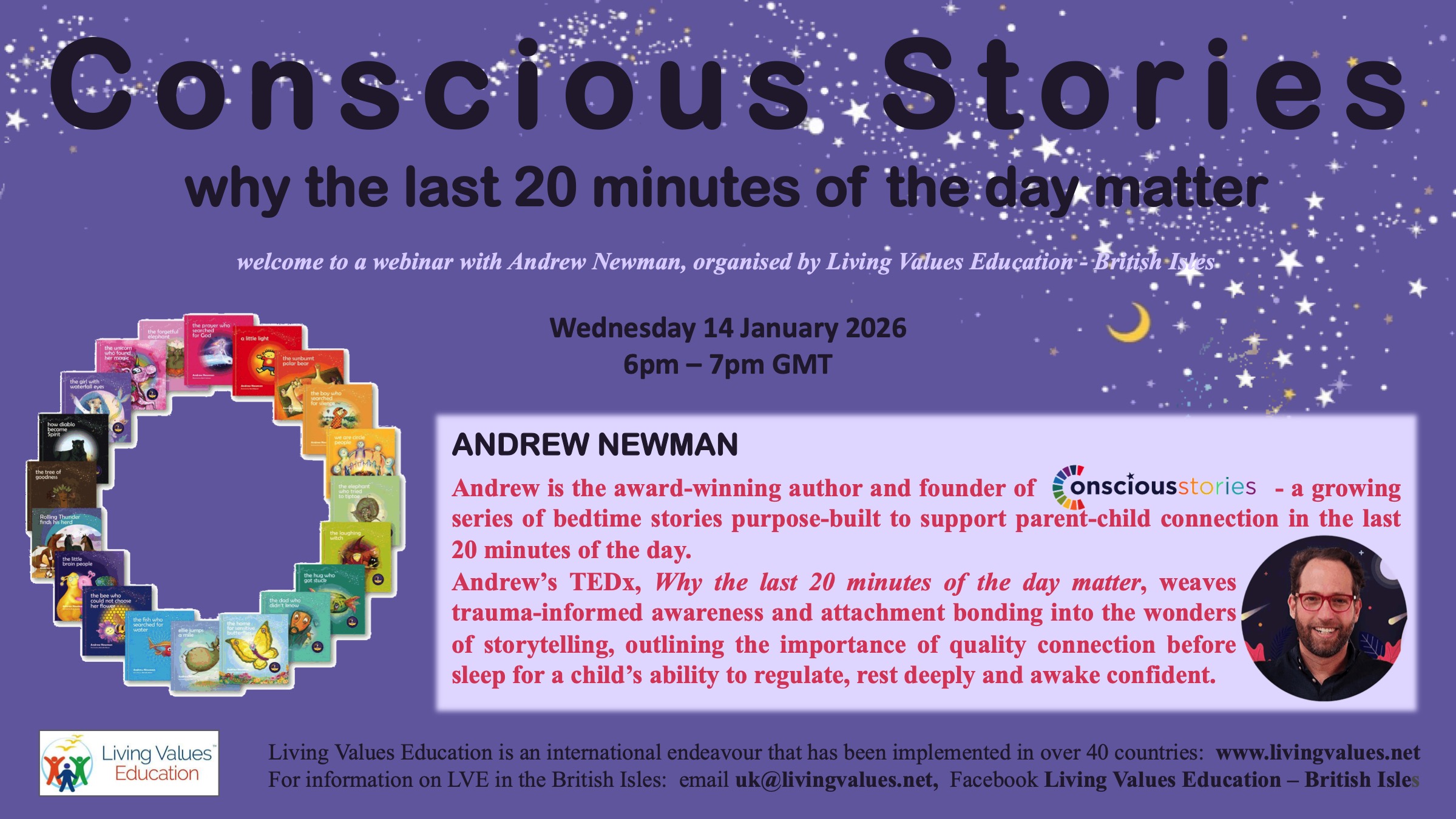 Our Living Values Education January 2026 Webinar - 'Conscious Stories: Why the last 20 minutes of the day matter' with Speaker Andrew Newman - is now available for viewing on our You Tube Channel here.
