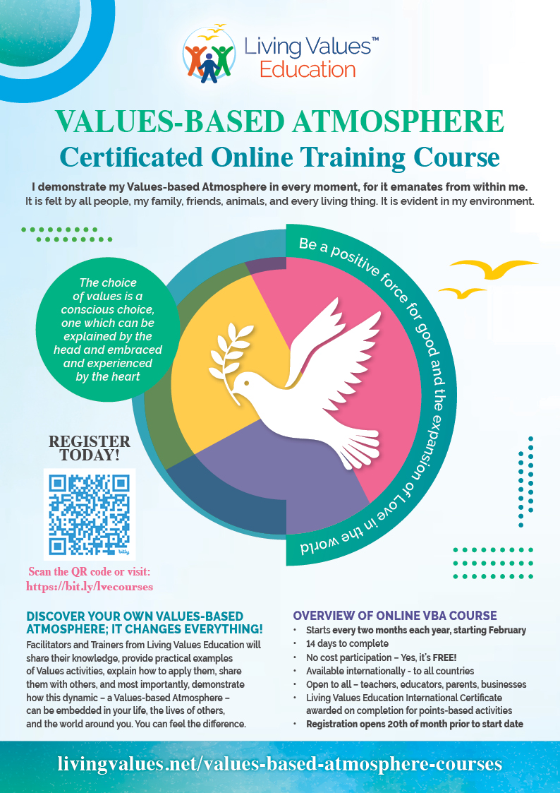 We are excited to announce registrations are now open for Living Values Education Values-based Atmosphere Certificated Online Training Courses. Register today! Our next course starts 14th April.